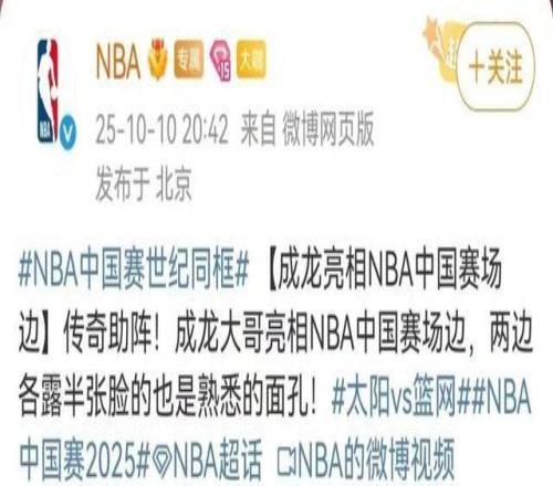 成龙也出现在NBA中国赛场边,旁边还坐着贝克汉姆。