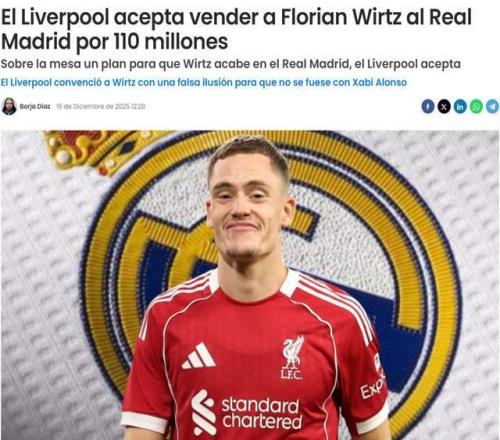西班牙网站Defensa Central称,维尔茨的未来出现意外转折,英超豪门正为其离队敞开大门,他的下一站可能是皇家马德里。早在今年夏窗,皇马就把这位德国中场列入了引援名单,但最终被利物浦抢先一步。然而,维尔茨在安菲尔德的表现远未达到预期。报道补充称:“如我们此前所言,皇马已将维尔茨列入候选名单,尤其是如果阿隆索带队拿下重要冠军并留任,白衣军团就更可能出手。届时,阿隆索也势必会再次向管理层力荐昔日爱徒。”
