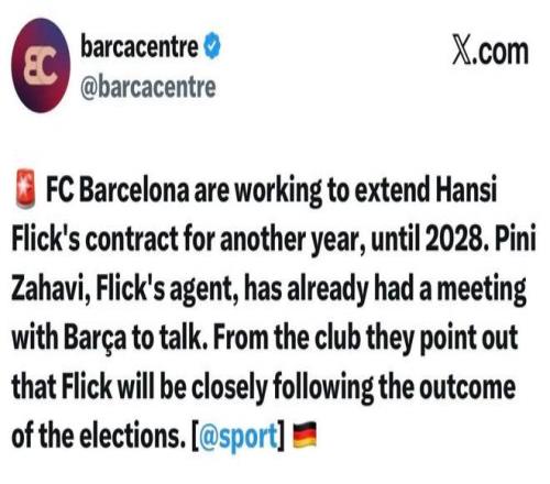 就在刚刚,根据西班牙媒体世界体育报带来的确切消息。巴萨方面已经正式作出决定,他们将在冬窗前官宣一则重要消息。这事关球队未来几个赛季的竞争力以及整体成绩,没错,巴萨希望继续与球队主帅弗里克进行续约。两边已经进行过多次接触,谈判进展非常顺利。对于巴萨而言留下弗里克可谓是意义重大。